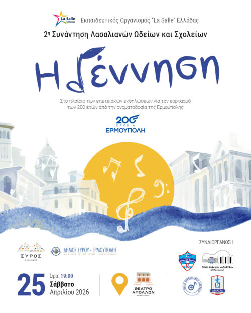2η Συνάντηση Ωδείων & Σχολείων του εκπαιδευτικού οργανισμού La Salle Ελλάδας στην Ερμούπολη Η Σύρος ετοιμάζεται να υποδεχθεί μια ξεχωριστή γιορτή μουσικής και συνεργασίας. Το ιστορικό Θέατρο Απόλλων φιλοξενεί, στις 25 Απριλίου 2026, τη 2η Συνάντηση Λασαλιανών Ωδείων & Σχολείων,...